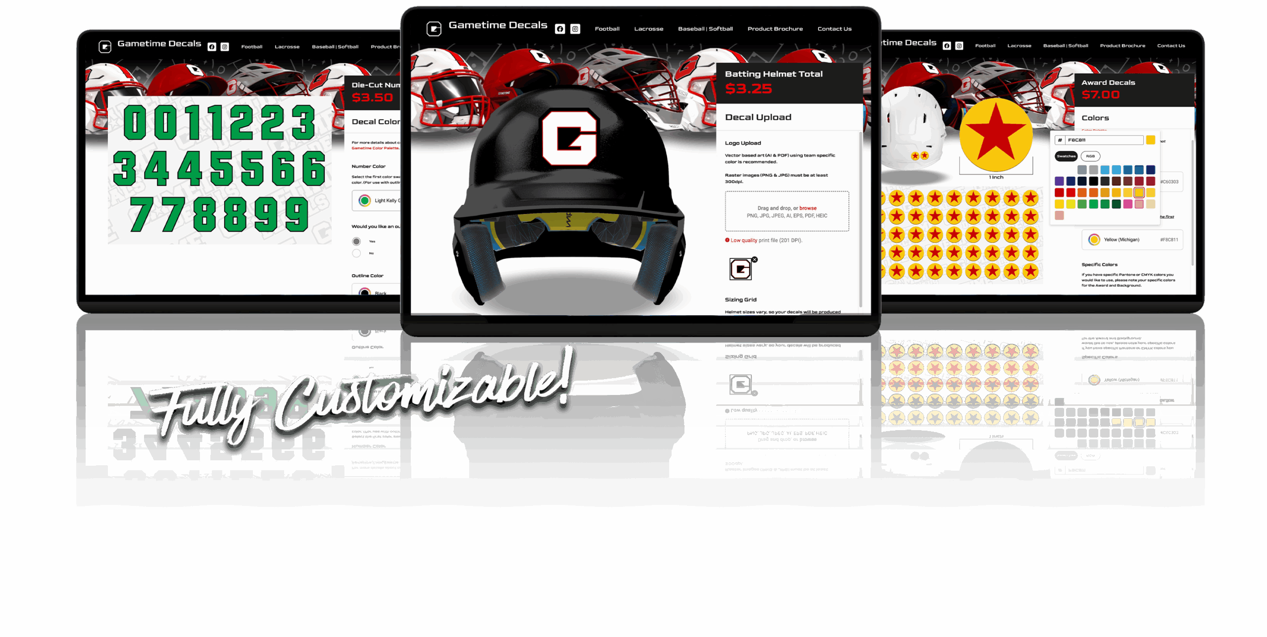 Our Decal Customizer gives coaches, equipment managers, and players the freedom to design like the pros. Once your design is ready, simply submit your order — we’ll print, cut, and ship your custom decals with the same premium materials trusted by teams nationwide.